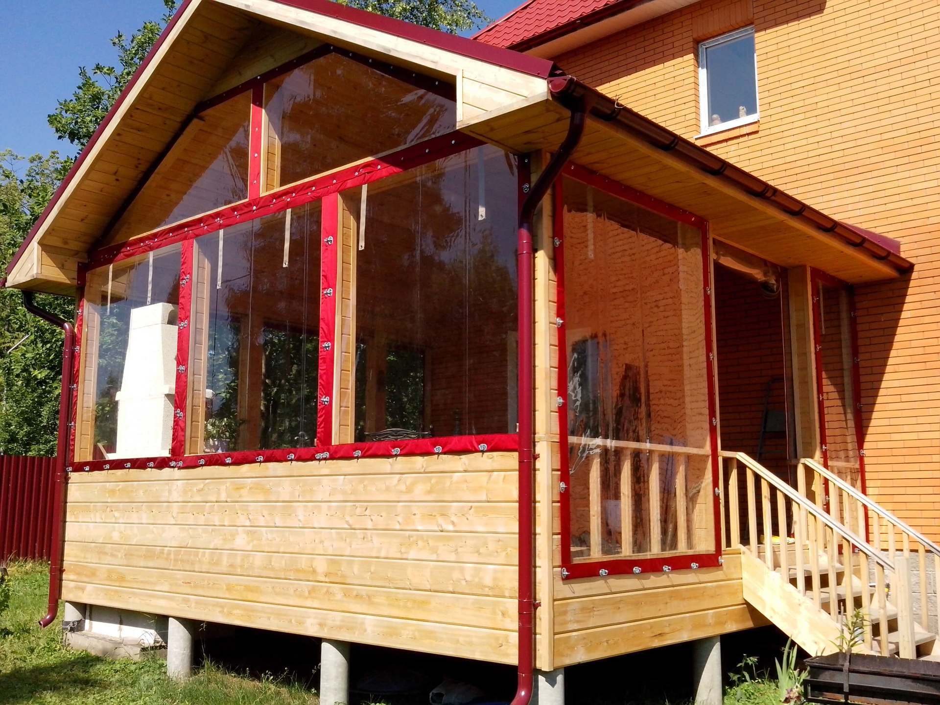 Мягкие окна отлично выполняют функцию безрамного остекления окон веранды или раздвижной террасы